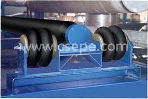 膠帶上支撐裝置采用密性托輥支撐,即在過濾面膠帶兩側(cè)裝有角鐵支撐架,支架上平均布置塑鋼合金托輥,膠帶運行在托輥上,可以減少膠帶磨損和驅(qū)動阻力,同時也能夠延長膠帶的使用壽命。
