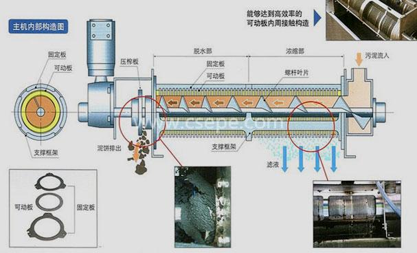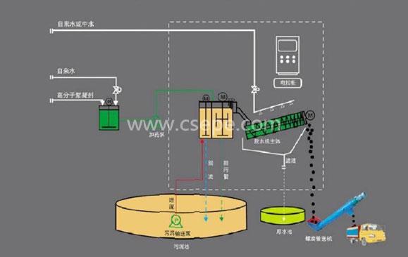 5、由于其構(gòu)造不會發(fā)生堵塞,所以不存在因能力降低而進行恢復清洗的問題,只需對從脫水部滲出的污泥進行沖洗即可;