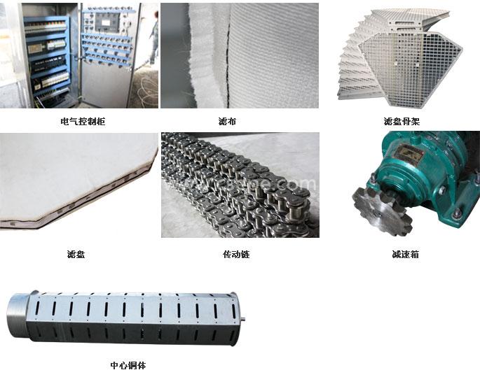 濾盤:每個濾盤由6個獨立的分片組成,上面覆蓋以濾布及襯底。